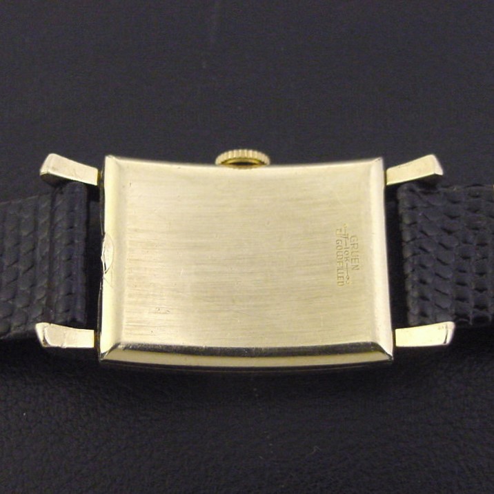 Very scarce Gruen "Curvex Kent" men's Mid-Century Modern design wristwatch in 10K yellow gold fill, circa 1950.