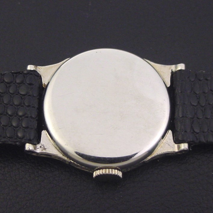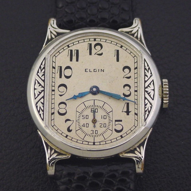 Rare Elgin "Model E-4 Eagle" men's Art Deco design wristwatch in 14K white gold fill, circa 1930.