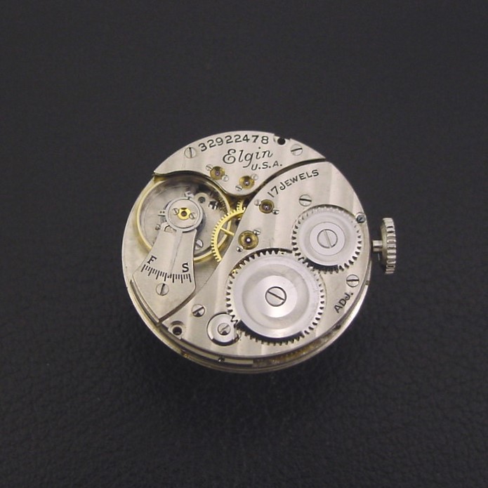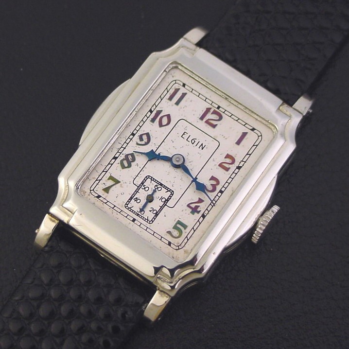 Very scarce Elgin “Model 1656” men’s Art Deco design wristwatch in 10K white gold fill, circa 1935.