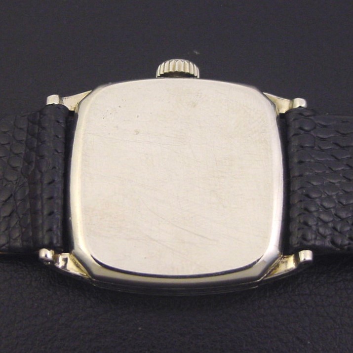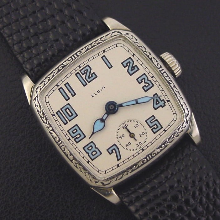 Elgin “Legionnaire 418” men’s Art Deco design wristwatch in 14K white gold fill, circa 1928.