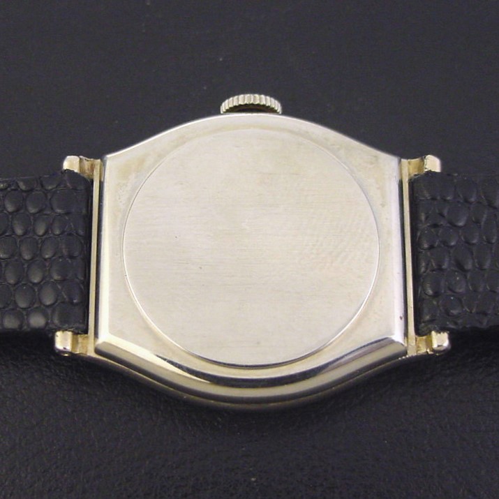 Very scarce Elgin “Avigo 461” men’s Art Deco design wristwatch in 14K white gold fill, circa 1930.
