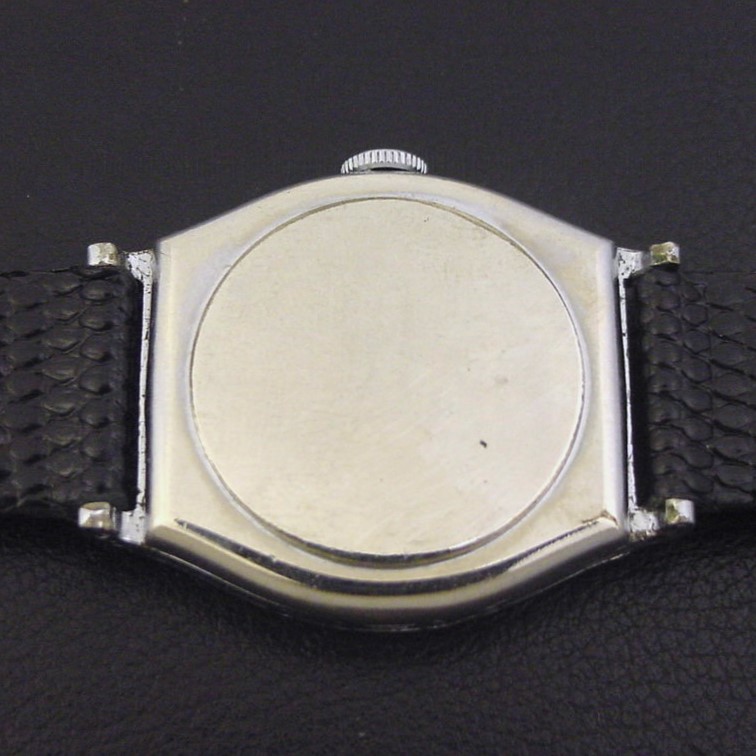 Very scarce Elgin “Avigo 475” men’s Art Deco design wristwatch in chromium nickel and rolled gold plate, circa 1932.