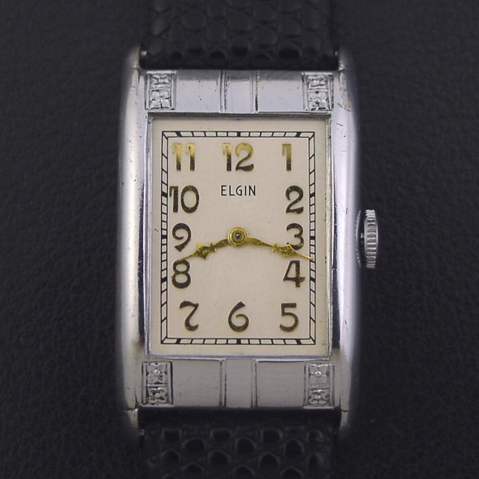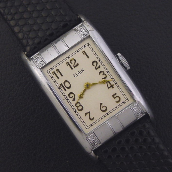 Elgin "Campus 940" men's Streamline Moderne design wristwatch in chromium nickel, circa 1931.