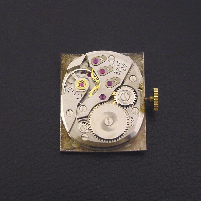 The “Aberdeen” has a cross-hatched bezel engraved bezel and an X-patterned two-tone dial. It is a very scarce model and this is only the second example I have ever offered. It was priced at $100.00 in 1956. It is in excellent condition showing only very light wear. Caseback is excellent, with a presentation engraving. Case measures 38mm long and 23mm wide. Original two-tone dial is superb, has solid gold applied numerals and markers. Has new domed acrylic crystal. The watch is powered by its correct 21-jewel Elgin grade 713 manual wind movement, serviced a few years ago and still running strong.
