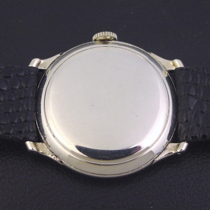 Rare Elgin “Model E-7B” men’s Art Deco design wristwatch in 14K white gold fill, circa 1930.
