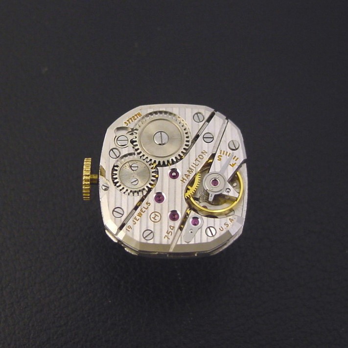 The "Berkshire" has a faceted case with faceted and flared lugs. It was priced at $135.00 in 1953. It is in excellent condition showing only light wear. All case edges and facets are distinct. Caseback is excellent and unengraved, with some light scratches. Case measures 41mm long and 24mm wide. Original dial is very good, with some patina and light marks. Has solid 18K gold applied markers. Has new glass crystal. The watch is powered by its correct 19-jewel Hamilton grade 754 manual wind movement, serviced a few years and still running strong. I will service the movement prior to shipping.