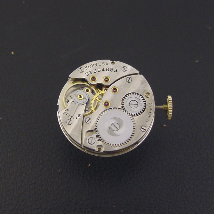 The "Crusader 1837" has a stepped, round bezel and was priced at $37.50 in 1937. It is a scarce model and this is one of the very few that I have ever offered. It is in excellent condition with only very faint brassing to the highpoints of the bezel and the tips of the lugs. Caseback is excellent and unengraved. The case measures 38mm long and 30mm wide. Original two-tone sector dial is excellent. Has new acrylic crystal. This watch is powered by its correct 17-jewel Elgin grade 524 manual wind movement, just serviced and running strong.